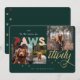 Envíe su alegría y positividad de vacaciones a su familia y amigos esta temporada navideña con nuestra divertida y festiva temática de perro 3 tarjeta de Navidades de vacaciones de collage de fotos de mascotas. Tarjeta de vacaciones perfecta para los amantes de las mascotas. El diseño presenta un diseño festivo, verde y multicolor "Pawsitividad", diseñado en una combinación divertida y elegante de tipografía de color y escritura de oro falsa. Impresiones multicolores decoran la tarjeta con un diseño de tres fotos para mostrar las fotos especiales de los perros mascotas. Personaliza con la firma familiar y el año. El reverso cuenta con un divertido diseño multicolor y de imitación de la pintura dorada que complementa el diseño frontal. Obra y diseño de Moodthology Papery.