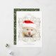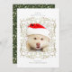 Derechos reservados © 2019 Socialite Designs Inc. & LICENCORS - Esta elegante tarjeta de foto de vacaciones cuenta con garante de acuarela y corona de hojas para rodear su foto de mascota. La parte posterior tiene un patrón de hojas de acuarela sobre un fondo verde oscuro. Agrega tu foto especial para enviarla a tu familia y amigos para desearles Feliz Navidad.