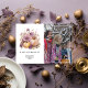 Tarjeta de felicitación de Acción de Gracias de moda en acuarela de color malva y oro con acebo y hiedra personalizable para los detalles de su evento.