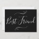 Es una tarjeta diurna mínima, moderna, en blanco y negro de Galentine. Tiene el texto "Mejor Amigo" en la tipografía de guiones en el frente, elegante y de tendencia. En la parte de atrás, tiene el mensaje, "Feliz Día de Galentine". Este diseño elegante, blanco y negro de tipografía y escritura es perfecto para su mejor amigo en el día de Galentine. Tienes espacio para que escribas tu mensaje en tu BFF. Si desea cambiar el texto, "Feliz Día de Galentine" y/ o "Mejor Amigo", simplemente puede escribir su propio texto en el cuadro de texto personalizar. Para más personalizar, compruebe la herramienta de edición de diseño. Si necesita ayuda con la personalización, productos coincidentes o un diseño personalizado, póngase en contacto conmigo a través de zazzle chat o correo electrónico: ursuladawnmoon@gmail.com