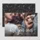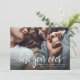 Esta moderna tarjeta fotográfica de Año Nuevo muestra las palabras "mejor año de la historia" en un guión blanco con el mensaje de su personalizado debajo. Tu foto se muestra detrás. La parte de atrás es un patrón blanco y negro.