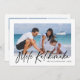 La tarjeta de vacaciones de collage de fotos con tipografía moderna presenta 4 fotos, la tipografía Mele Kalikimaka en letra manuscrita de moda, el nombre de la familia y un año en la parte delantera. Personalice aún más con 3 fotos y texto en la parte posterior. Tarjeta perfecta elegante y simple para desear felices fiestas a familiares y amigos.