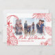 ¡Experimenta la magia del espíritu Navidad con un toque tropical! Nuestras tarjetas de Navidades Mele Kalikimaka exudan simplicidad y elegancia con un fondo blanco prístino y una plantilla de foto triple. La belleza del rojo tropical, las hojas de palma, las estrellas de mar y las conchas cobran vida en estas cartas - personalizadas con tu nombre y año familiar. Una pieza única de espíritu festivo para compartir con sus seres queridos.