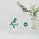 Divertido y diferente saludo de vacaciones con una casa en invierno con una imagen falsa creada digitalmente y un muñeco de nieve en el patio con ropa verde azulada. Esta invitación cuadrada de dos lados se ha convertido en una manera única de enviar saludos de vacaciones cuando se personalizar el texto en el reverso.