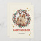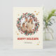 Comparte la alegría de las vacaciones con esta retro tarjeta de fotos clásica de Navidad que incluye una corona verde y roja festiva, atrevidas "Felices Fiestas" en el tipo de letra de Superstar, y espacio para tu foto familiar favorita. Personalice el nombre de su familia en la parte delantera y añada una nota sentida en la parte trasera para un estilo nostálgico de vacaciones de mediados de siglo.