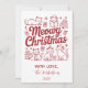 A charming holiday design for cat lovers, featuring festive red line art of playful kittens, Santa hats, presents, and Christmas trees with the phrase “Meowy Christmas.” Perfect for cozy Christmas gatherings, pet-themed parties, or anyone who believes every celebration is better with cats.