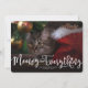 'Meowy Everything' (Merry Everything) en la elegante caligrafía de escritura blanca y un acento de impresión en trazo sobre una foto con cuerpo completo, divertida tarjeta Mascota de vacaciones para todos los amantes del gato / propietarios de gatos. La parte posterior de la tarjeta presenta un patrón de estrellas completo. Todo el texto, los elementos gráficos, el patrón y el fondo se pueden cambiar a cualquier color que elija. Obra de arte diseñada / original por fat*fa*tin. Fácil de personalizar con tu propio mensaje de texto, nombre, año, foto o imagen. Puede consultar más funciones de edición en la página "edite el diseño" www.zazzle.com/color_therapy www.zazzle.com/fatfatin_blue_knot・・・・・・. www.zazzle.com/fat_fa_tin
