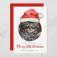 Tarjeta Festiva Meowy pequeños Navidades foto de gato de Santa Hat