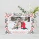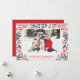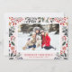 Esta tarjeta de saludo tiene un bonito fondo rojo y un patrón de follaje invernal. Puede personalizar los detalles del texto y los colores.