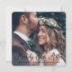 Enviar alegres deseos de vacaciones como nuevo Sr. ¡Y la Sra.! Celebra a tus primeros Navidades casados y comparte dos de tus fotos favoritas de bodas con una elegante tarjeta cuadrada de vacaciones "Merrily Ever After". Todo el texto de esta plantilla es sencillo de personalizar para incluir cualquier texto, como Feliz y Casado, Merrily Casado, Felices Fiestas, Saludos de Temporadas, Saludos de Año Nuevo, etc. Borra el texto de atrás si prefiere escribir a mano una nota para una tarjeta de agradecimiento del boda y de Navidades combinadas. (IMAGEN PLACEMENT TIP: Una manera fácil de centrar una imagen exactamente como se desea es recortarla antes de subirla al sitio web de Zazzle.) El moderno diseño minimalista en blanco y negro presenta un diseño de escritura a mano de moda y dos fotos cuadradas de su elección. A la familia y amigos les encantará mostrar esta elegante tarjeta personalizada. ¡Salud a los recién casados!