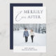 Merrily Siempre Después De La Tarjeta De Festividad De Navidades Con Guión Azul. Envíe personalizable y saludos personalizados de vacaciones a amigos, colegas y familia en festividades de diseño fotográfico simple, moda, elegante y moderno, tarjetas de estilo minimalista natural! Debajo de la caligrafía se muestra el mensaje de bienvenida de su personalizado en la tipografía moderna.
