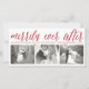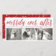 Esta moderna invitación de bodas de vacaciones o una primera tarjeta de navidad para la pareja recién casada incluye 3 collage de fotos en la parte delantera y un sencillo saludo de Navidades que dice 'Merrily Ever After' en un guión de caligrafía rojo festivo y moderno. La parte posterior de la tarjeta se deja en blanco para su propio mensaje. Obra de arte diseñada / original por fat*fa*tin. Fácil de personalizar con tu propio mensaje de texto, nombre, año, foto o imagen. Puede consultar más funciones de edición en la página "edite el diseño" www.zazzle.com/color_therapy www.zazzle.com/fatfatin_blue_knot・・・・・・. www.zazzle.com/fat_fa_tin