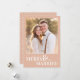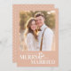 Celebrate your first holiday season as newlyweds with this elegant “Merry & Married” photo design featuring a soft blush background and a large customizable photo space. The classic typography and subtle gold frame create a warm, romantic feel that highlights your favorite wedding or engagement photo. Perfect for sharing joy, love, and your happily ever after with family and friends this Christmas.