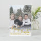Esta simple tarjeta es elegante y minimalista. Cuenta con una foto enmarcada con un texto en caligrafía dorada que dice "Alegre y Brillante". Hay espacio para sus nombres y el año. Hermosa manera de enviar buenos deseos para Navidad o la temporada de fiestas.