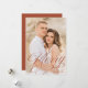 Elegante tarjeta de vacaciones con tu foto vertical con "Merry" mostrado en un guión de caligrafía de terracota superpuesto con un gradiente blanco opcional. Personalice la parte delantera de la tarjeta de vacaciones de la secuencia de comandos de caligrafía agregando su nombre a continuación. La tarjeta fotográfica de vacaciones se revierte a un sutil patrón de nieve blanca con fondo de terracota.