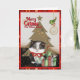 Tarjeta Festiva Merry Catmas Cute Kitten Christmas Red bow