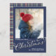 Tarjeta Festiva Merry Christmas Caligraphy Script Navy Blue Plaid