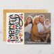 Feliz Navidad con un divertido tipo de letra acentuado por artículos de vacaciones destaca tu foto familiar favorita en estas tarjetas de fotos navideñas acentuadas con falsos purpurinas de oro en la espalda. COINCIDIENDO elementos de nuestra colección.