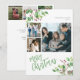 Moderno y elegante escritura caligráfica de color verde Feliz Navidad guión 6 collage de fotos familia simple blanco elegante tarjeta de vacaciones familiares con tu personalizado texto personalizado en ambos lados con color de agua vegetación botánica y bayas sagradas.