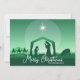 Tarjeta Festiva Merry Christmas Nativity Scene Green Religious
