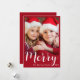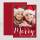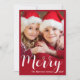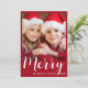 Elegante tarjeta de vacaciones roja de temporada con tu foto, "Merry" en un gran guión blanco elegante y tu nombre y año.