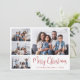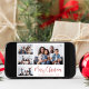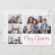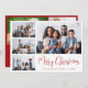 Tarjeta plana de vacaciones moderna con un collage de fotos en la parte delantera, "Feliz Navidad" en un guión rojo de moda y tu nombre y año en una tipografía simple. Añade 2 fotos adicionales en la parte posterior y tu saludo personalizado a la familia y amigos.
