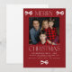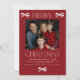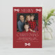 Tarjeta Festiva Merry Christmas trendy red white bow family photo