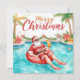 Tarjeta Festiva Merry Christmas Tropical Santa Summer Pool Party