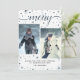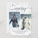 Nuestra tarjeta de 2 fotos de Feliz Navidad incluye tipografía de escritura fantástica y estrellas y caída de nieve en azul de medianoche no tradicional. Personaliza fácilmente con tus fotos y tu nombre de familia. #MerryChristmas #PhotoCards