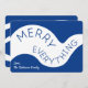Tarjeta Festiva Merry Everything Blue Typography Resumen Curvas ab