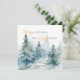 Watercolor winter trees in shades of green paired with script and modern typography holiday card.