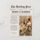 Spread holiday cheer with a "Merry & Married" Christmas newspaper holiday card. This unique design mimics the look of a classic newspaper, featuring a playful headline that celebrates your recent marriage. Include a favorite photo of you as a couple, along with heartwarming updates and festive messages that capture the spirit of the season. The creative layout adds a fun and nostalgic touch, making it perfect for sharing with family and friends. This card combines your love story with holiday joy, creating a memorable keepsake that will delight all who receive it.