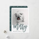 Tarjeta Festiva Merry moderno mínimo | Verde azulado con foto