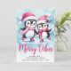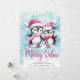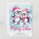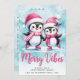 Tarjeta Festiva Merry Vibes Cute Penguins Navidades Blue Pink