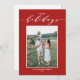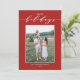 Felices fiestas! Envíe sus deseos de vacaciones a la familia y amigos con esta moderna tarjeta de vacaciones de personalizable. Presenta un guión elegante y una tipografía simple. Personalice esta tarjeta de festividad fotográfica añadiendo nombres y una foto. Esta tarjeta roja de vacaciones está disponible en otros materiales y colores.
