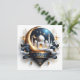 Tarjeta Festiva Mezquita dorada Eid Ramadan Media luna Azul Blanco