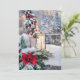 Linterna nevada con abeto y bayas de poinsettia, económica, añade saludos con la herramienta de diseño.