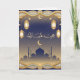 Tarjeta Festiva Minimal Blue & Gold Mosque Skyline Eid Mubarak