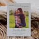 Esta mínima alegría verde y casi casada, salvo la tarjeta de vacaciones de fecha, es el sencillo y perfecto saludo de vacaciones para una pareja comprometida. El diseño presenta una tipografía clásica en blanco y verde, acompañada de un tipo de letra rústico-elegante con letras a mano. Personaliza la tarjeta con tu foto de compromiso, nombres, fecha de boda.