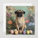 Tarjeta Festiva Moda floral botánica rústica de pug de Pascua