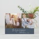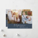 Este moderno boletín de fotos de la marina de moda de la es el elegante saludo de vacaciones perfecto. Este sencillo diseño de boho presenta una caligrafía clásica sofisticada en un rústico azul marino oscuro y blanco. Personalice la tarjeta con 5 fotos (2 en la parte delantera y 3 en la parte trasera), su nombre de familia, nombres y año. Incluir un año opcional en revisión o boletín familiar en la parte posterior de la tarjeta.