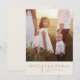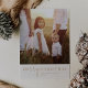 Esta moderna tarjeta de moda dorada con fotos navideñas de Feliz Navidad es el elegante saludo perfecto de vacaciones. Este sencillo diseño de boho presenta caligrafía clásica sofisticada en oro y crema vintage. Personalice la parte delantera de la tarjeta con una foto, su apellido y el año.