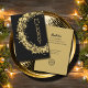 Círculos y estrellas y puntos dorados sobre un fondo negro rodean la palabra "MERRY" o su mensaje en la parte delantera y sus nombres, saludos y logo en la parte posterior. MÁS estilos y elementos coincidentes en nuestra colección.