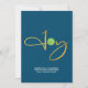Elegante carta de Navidades planos de bolas de bolas de bolas de bolas. Mensaje con guión "Alegría" en oro con una bola verde de cal de neón que sirve como letra "o". Tipografía con guiones y minimalista. Color de fondo moderno y negrita. Perfecto para aquellos que aprecian la sencillez, la elegancia sobria y el amor por el juego. Póngase en contacto para obtener ayuda para personalizar o personalizar sus deseos individuales. Felices fiestas!