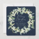 Una tarjeta de vacaciones cuadrada y plana, con bayas de nieve pintadas a mano y tallos de eucalipto dispuestos en una bella corona de Navidades con un fondo azul marino oscuro. Todo el texto, aparte de "Feliz Navidad", es totalmente editable para que puedas cambiar fácilmente el mensaje/estilo/color/tamaño. La parte posterior está en blanco si desea agregar un mensaje más largo o un resumen anual - o intercambiar en una foto. Elementos de coordinación disponibles.