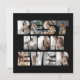 Diseño moderno y simple con 11 fotografías cuadradas de su elección, utilizando las letras de BEST MOM EVER en un fondo negro. Un regalo maravilloso para dar a su mamá durante su cumpleaños, Navidad o celebración del día de la madre con su nombre y mensaje en la parte posterior.