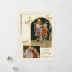 Modern Gold Bows and 3 Photo Happy Holidays Gold Arch Christmas Holiday Card. Celebrate the season in style with this elegant family photo Holiday card featuring a modern gold color arch-shaped photo frame with boho cute gold coquette bows accents. Personalize it with your favorite family photos, family name, and the year on neutral off white or ivory cream beige background. The festive design is highlighted with elegant faux-gold color "Happy Holidays" calligraphy text, creating a warm and timeless look. The back showcases holiday message template with hand lettered name and one family photo. A perfect holiday card to share with family and friends in winter holiday season.