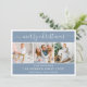 Modern Trendy Calligraphy Script 3 Photo Family Photo Collage Merry Christmas Card - Dusty Blue