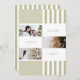Modern and bold green and white stripe colorblock three photo holiday card features a simple and clean design with elegant serif type and your custom photos. The back is a trendy stripe pattern. Personalize this festive Christmas card with your family name and year.