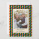 This holiday photo card features a modern geometric border in festive shades of green, red, mustard, and pink. The bold, diagonal pattern creates a cheerful frame around your family photo, offering a fresh take on traditional holiday design. All text is fully editable, making it easy to personalize your message for Christmas, Hanukkah, or any seasonal celebration.